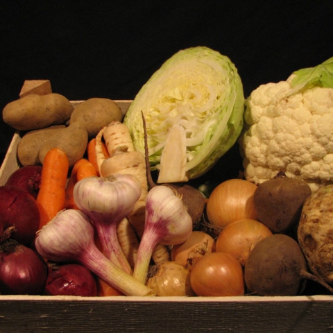 Bedýnka obsahuje: celer, řepa červená, česnek, zelí bílé, pórek, květák, cibule žlutá, cibule červená, petržel, mrkev, brambory. Složení bedýnky může být změněno podle sezóny.