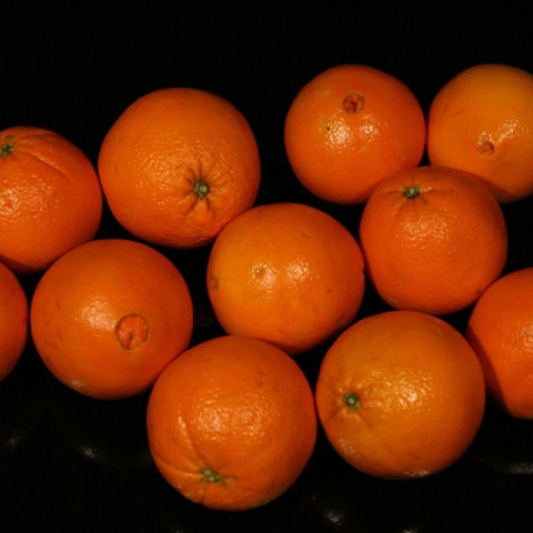 Pomeranče Lane Late mají kulovitý tvar s malým pupíkem.